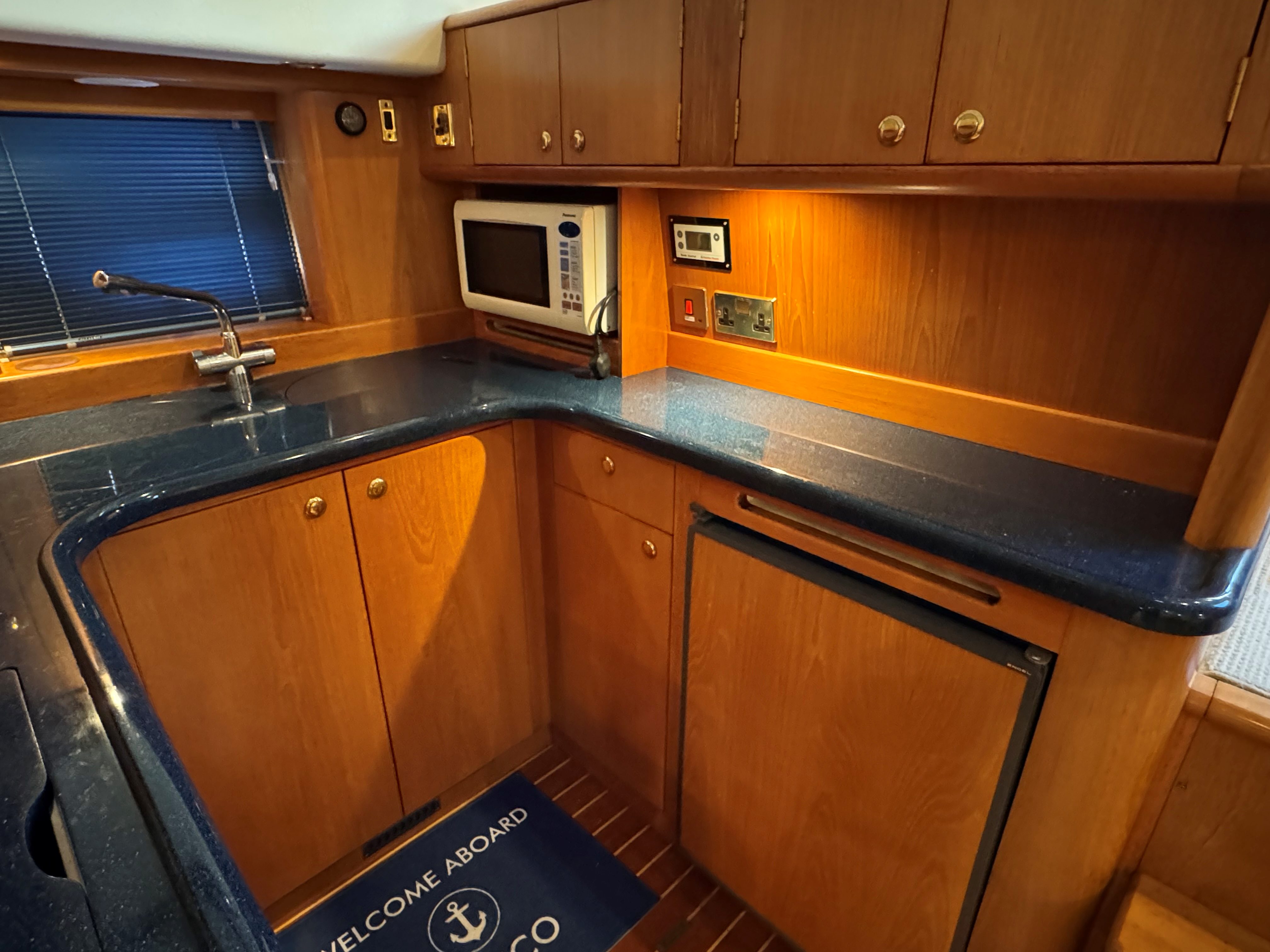 A well appointed Galley with fitted appliances and a generous amount of work surface.