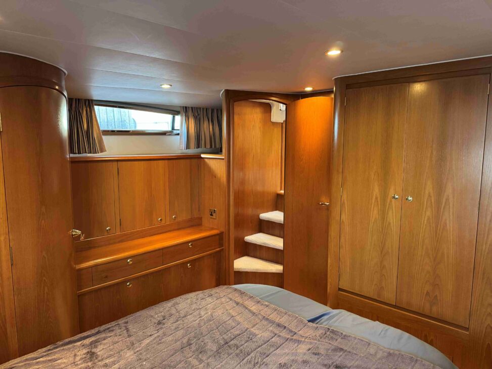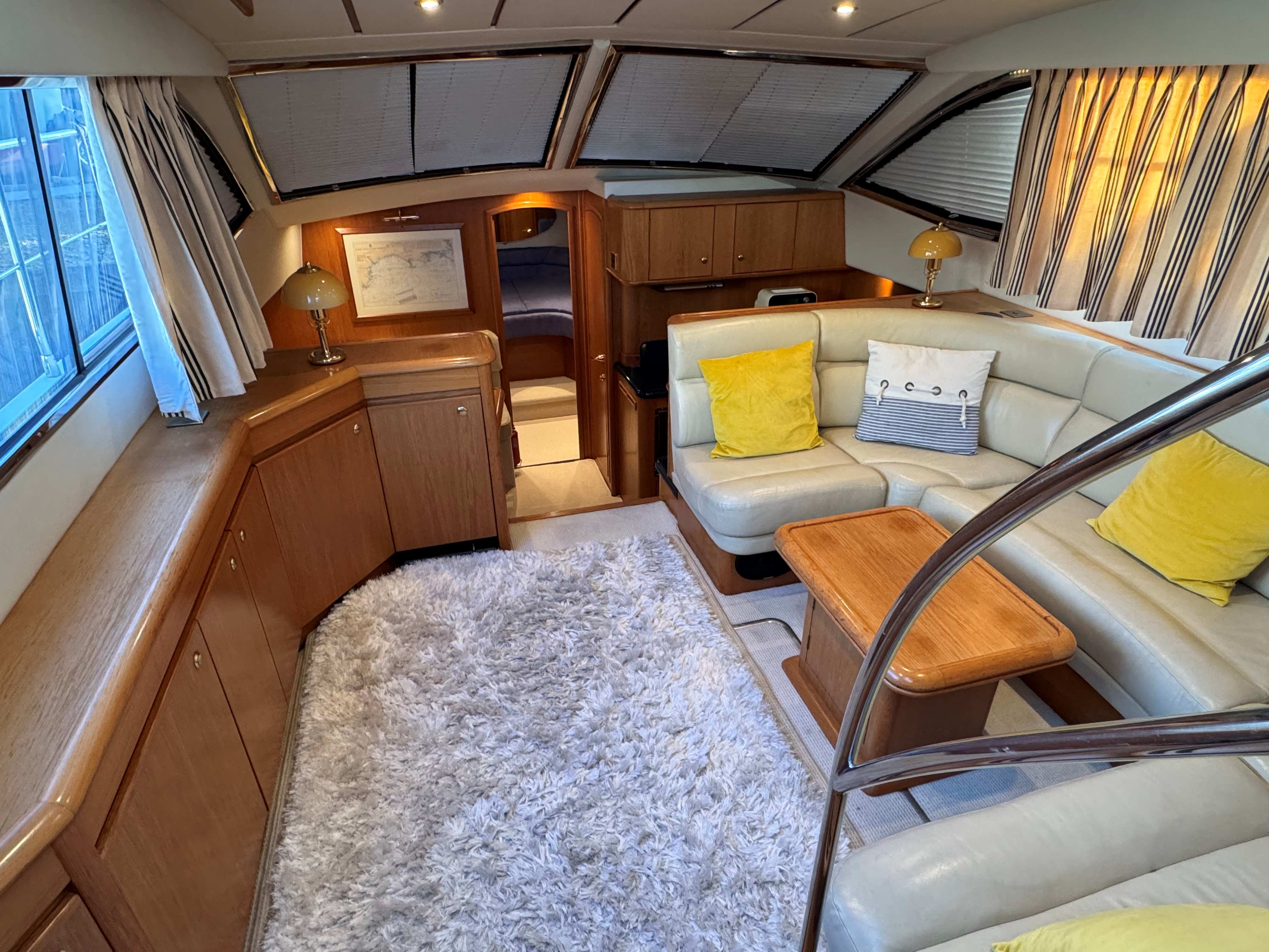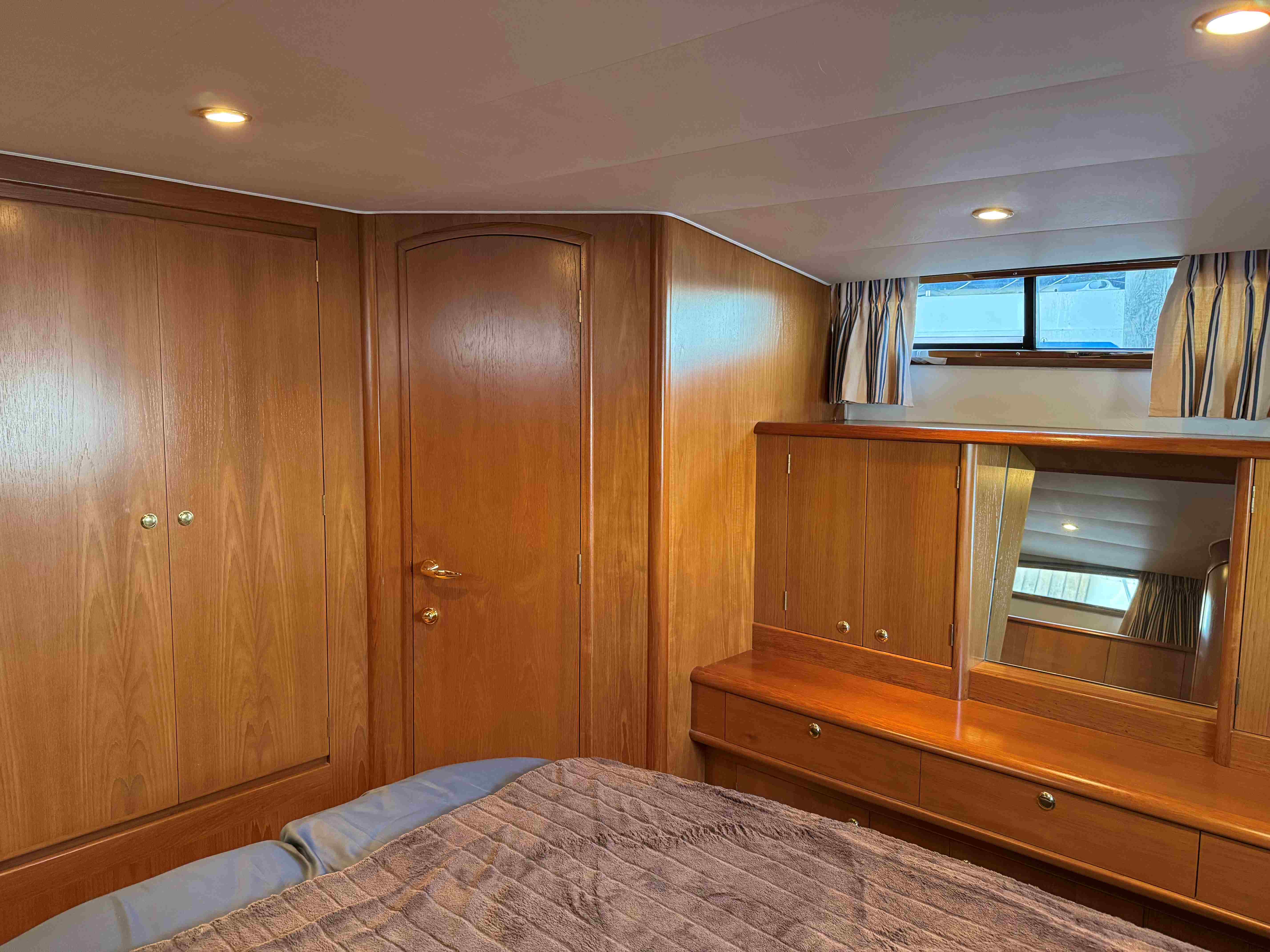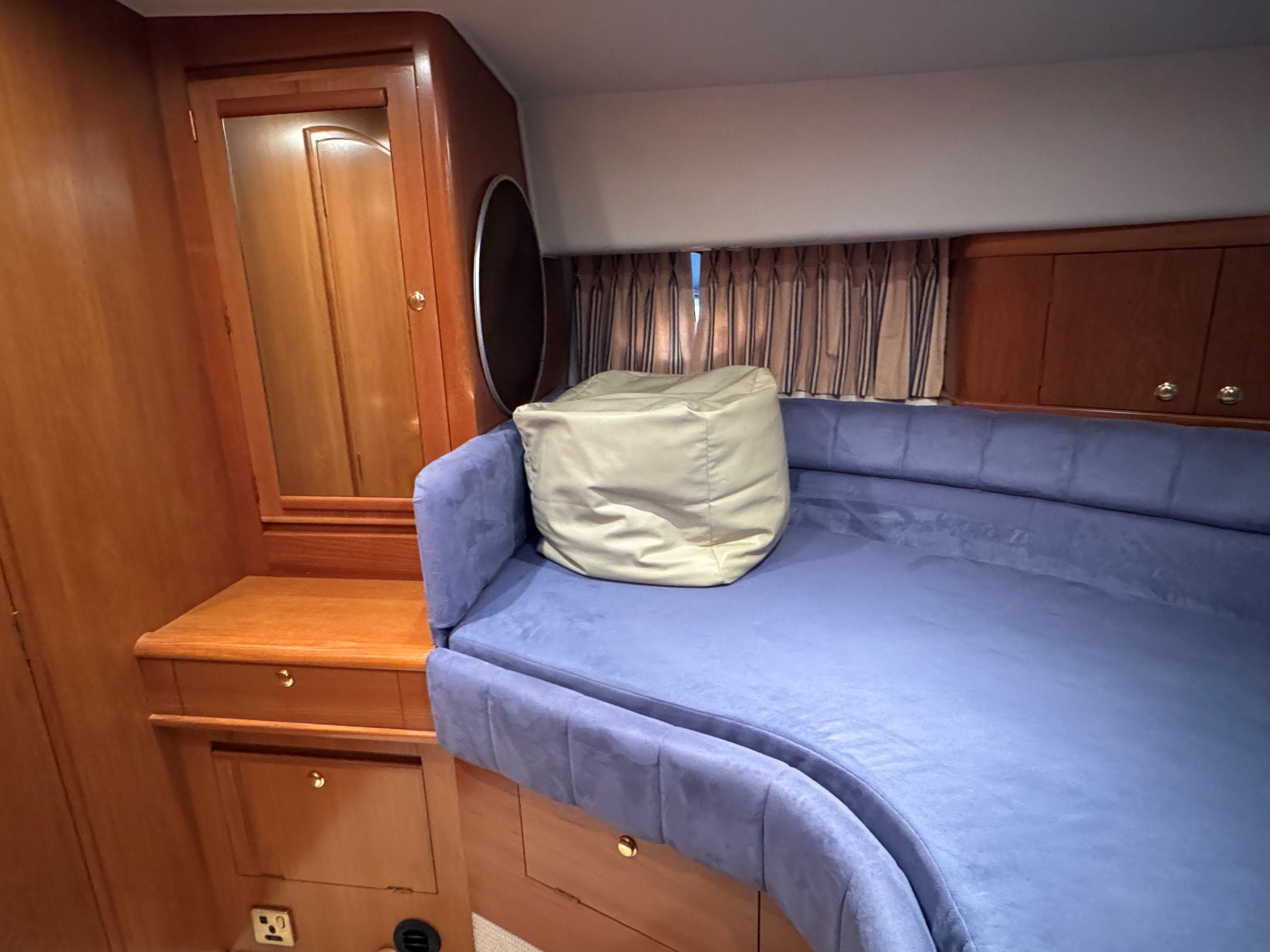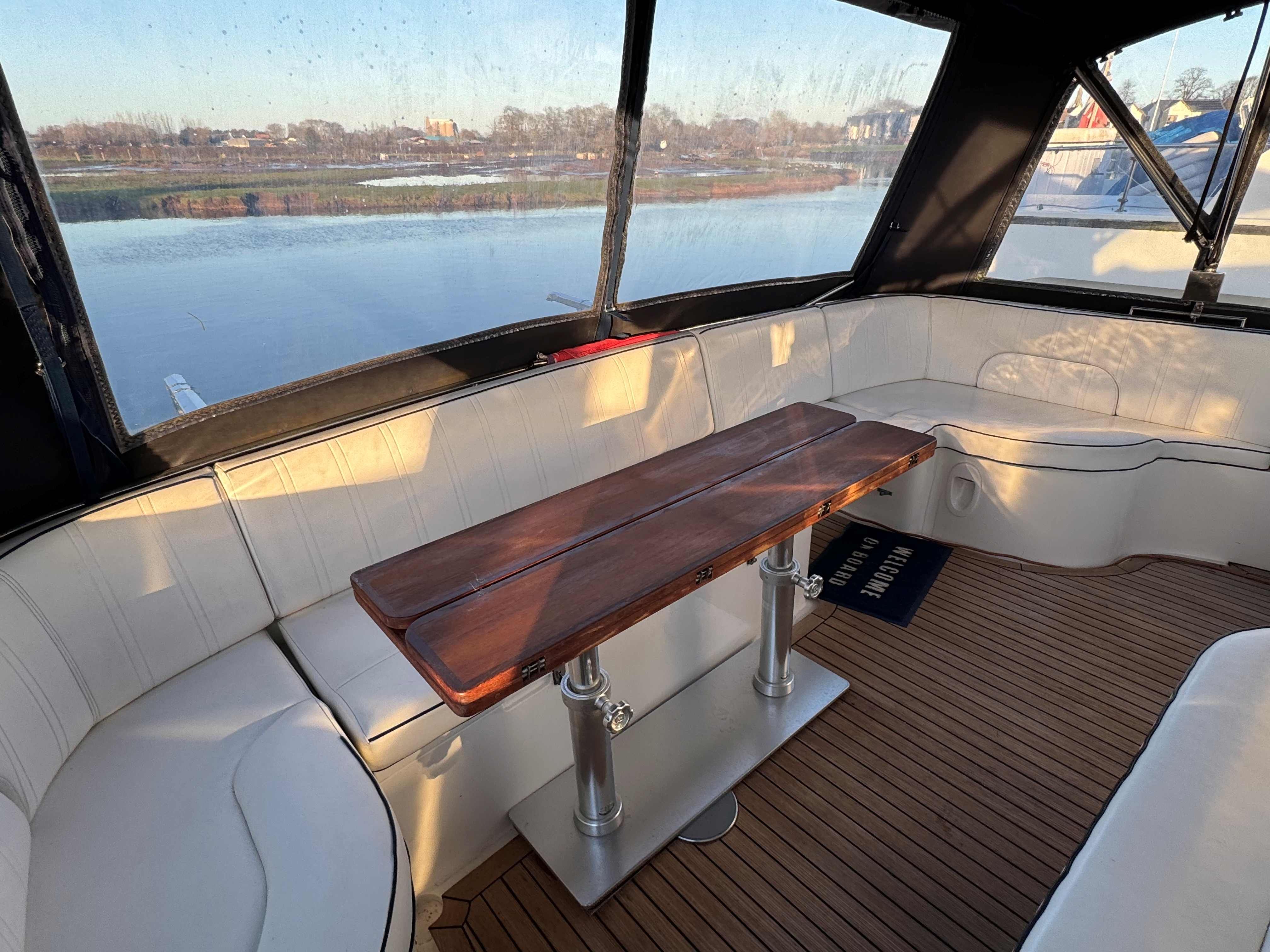 Internally Calico is in excellent condition with teak finish woodwork, cream carpets, leather upholstery and curtains or blinds throughout. The spacious accommodation provides two private cabins, ensuite facilities to both and a large living space with lounge, dining area and galley.