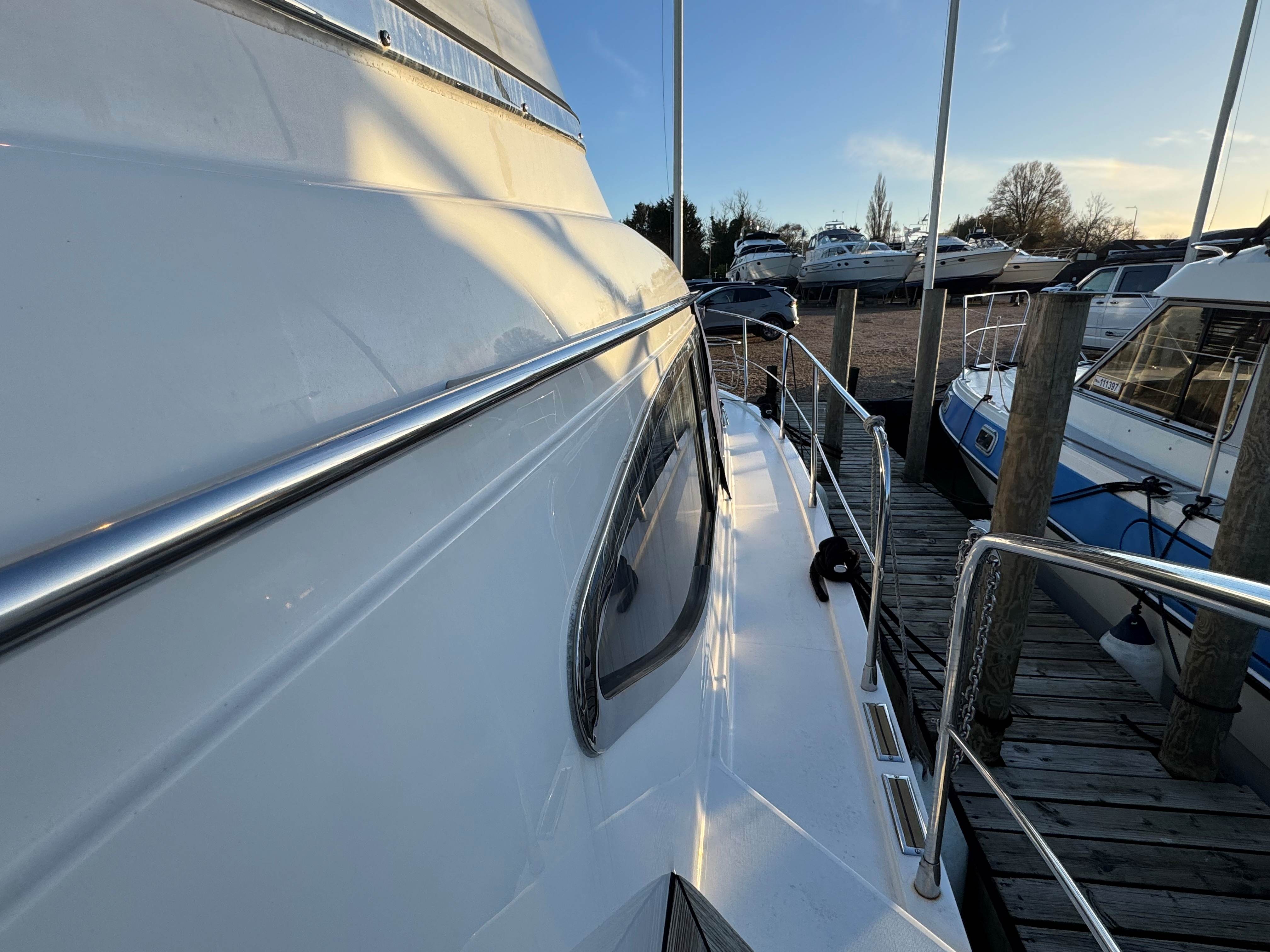 Offering a high specification including bow thruster, generator and Raymarine navigation package. The twin Yanmar 6LY2 – STE diesel engines have been serviced each year within the current ownership and the tappets on both engines were checked and adjusted in 2020. The boat has been out on the hard standing each year to be antifouled and polished. With an extremely comprehensive maintenance log, it is evident that the boat has been looked after and jobs addressed when required. All in all a superb example of the Broom 415, ready to go.