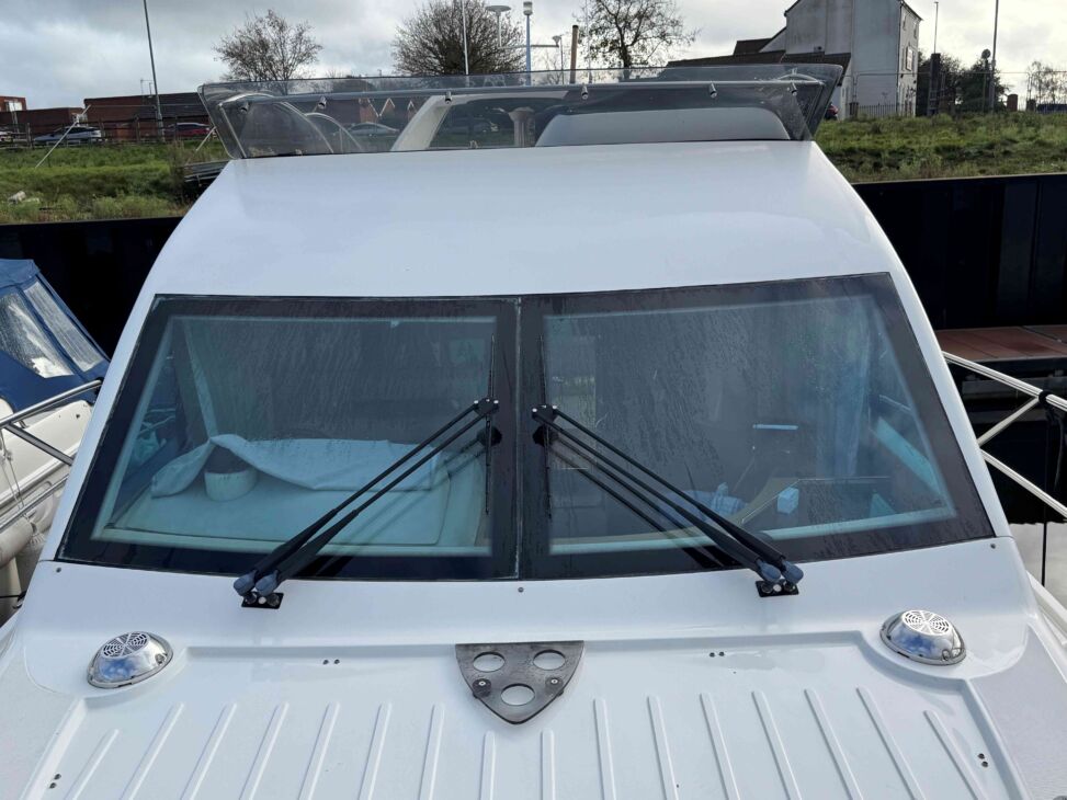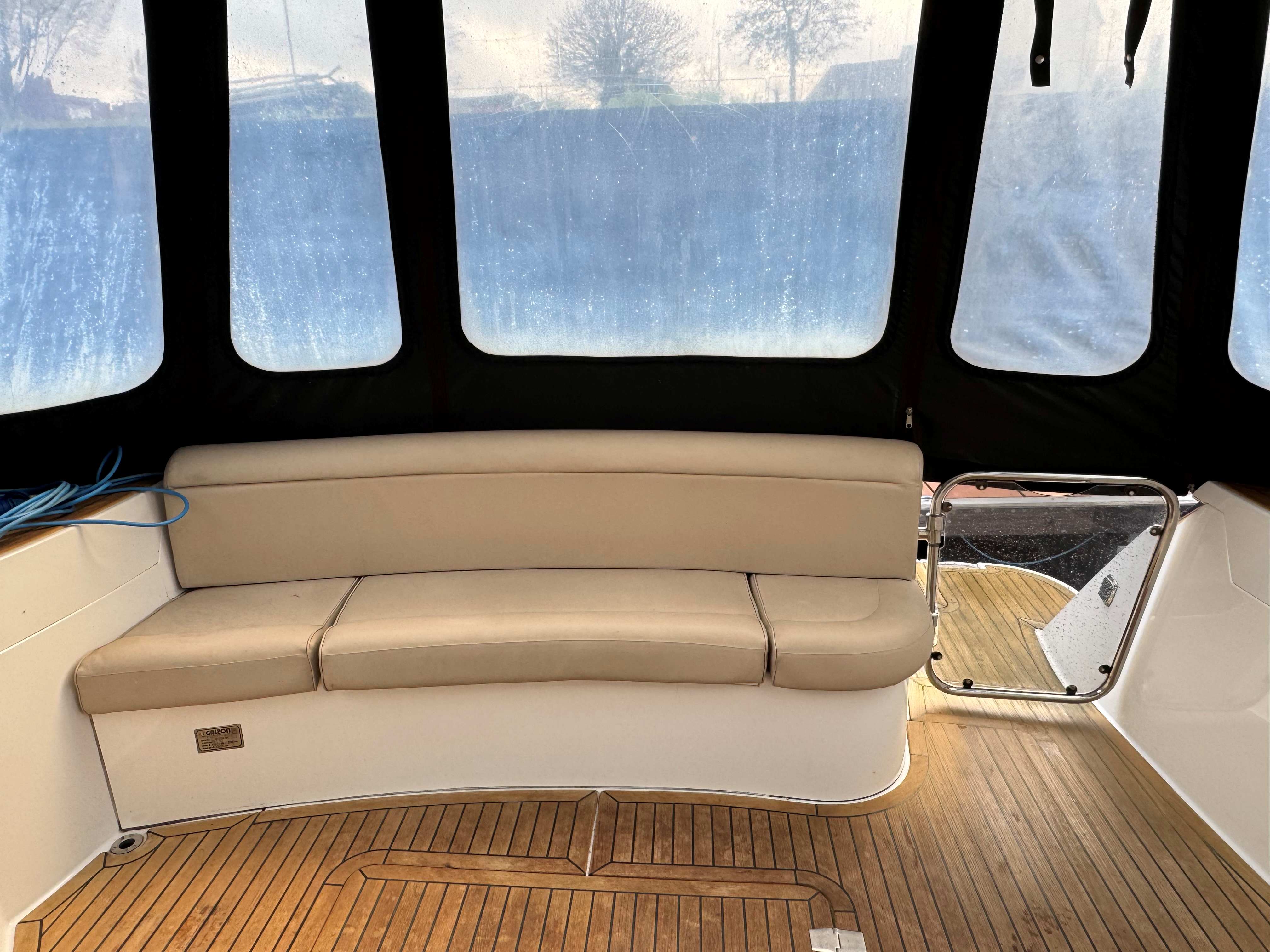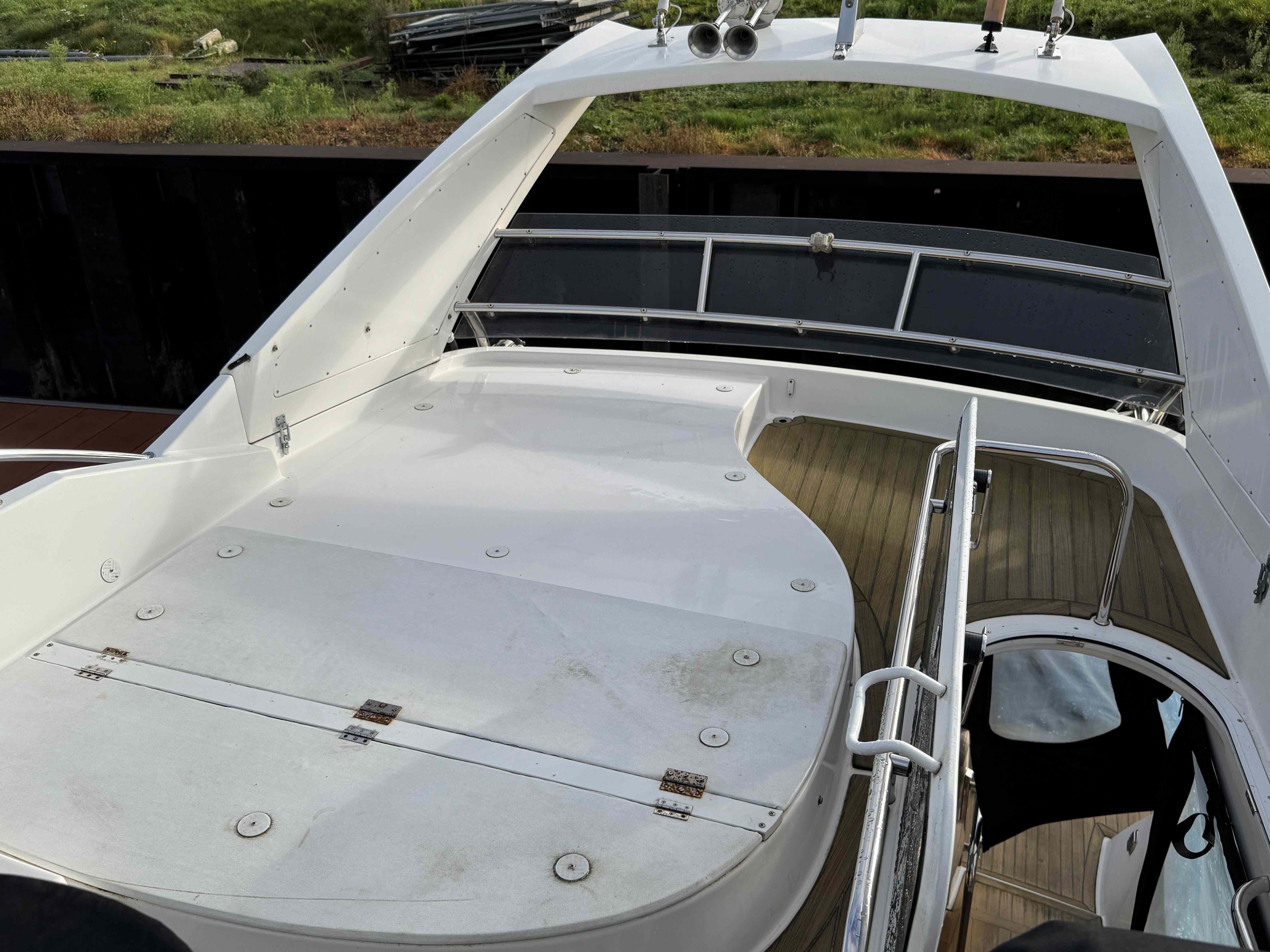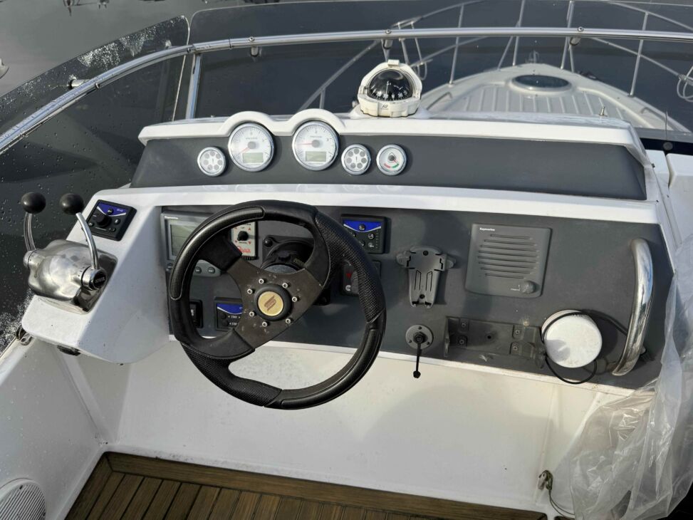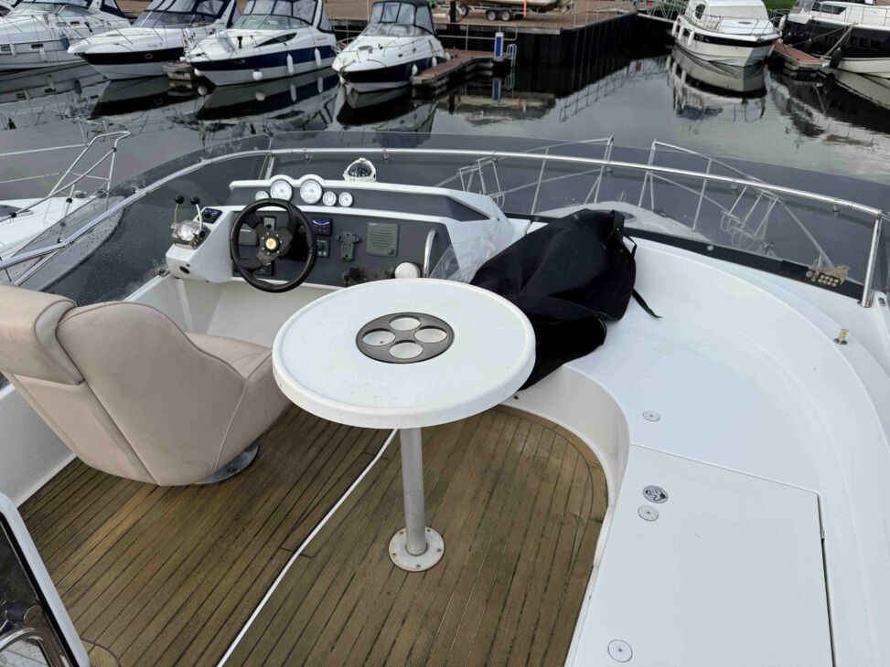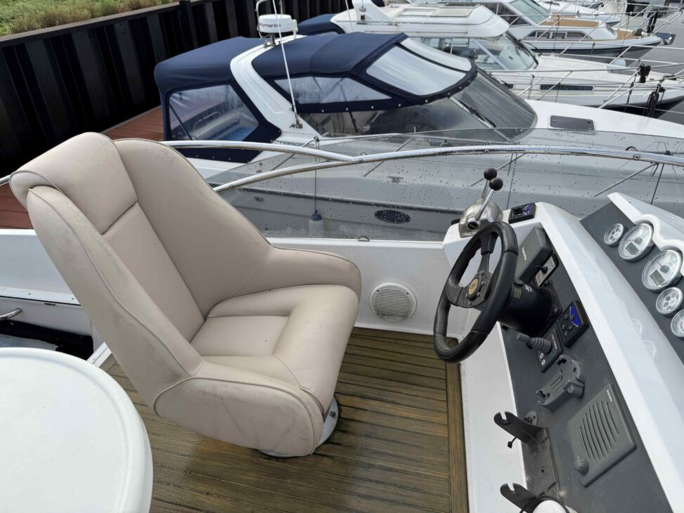 Positioned forward is a helmseat to port and spacious couch to starboard for passengers. Aft is a practical locker for a table, placed under the spacious sundeck.